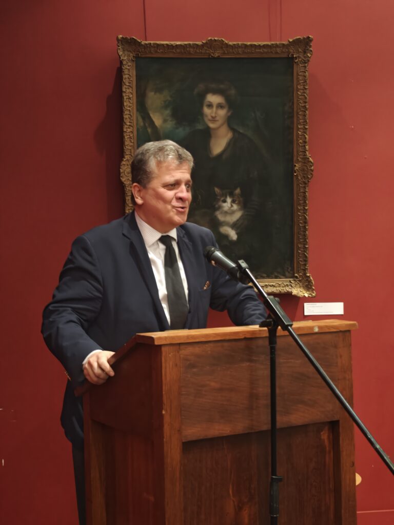 Jean Rozwadowski a chaleureusement accueilli tous les invités, en rappelant la coopération fructueuse de 2025 et en remerciant l’IBPP, notamment Monsieur le Directeur Professeur Maciej Forycki et Madame la Présidente Beata Skrzypek, pour leur précieux soutien. Il a évoqué l’accord tripartite signé en octobre 2023 et a souligné l’importance de la convivialité qui guide toutes les activités de l’association. Le président a également présenté la tradition de la Galette des Rois et des fêtes de fin d’année, moments de partage et de rencontres, y compris les traditions polonaises de Noël. Il a insisté sur la nécessité d’impliquer les jeunes dans la vie de la SHLP, en mettant en avant l’initiative de Madame Aurore Bocti destinée à attirer un public plus jeune à la Bibliothèque. Il a rappelé les nombreuses activités organisées pour les jeunes et les adultes, telles que Janvier comme Jeunesse, inspiré par l’œuvre de Jan Brzechwa, les rencontres culturelles, ainsi que l’attribution des bourses de la SHLP pour de jeunes chercheurs. Il a conclu son discours en adressant ses meilleurs vœux pour la nouvelle année.