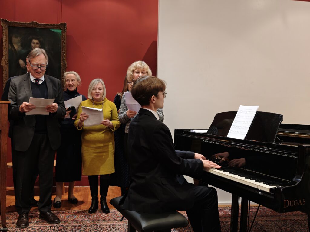 L’organisation de la soirée a été présentée par Madame Elizbeth Walle, secrétaire générale de la SHLP, qui a remercié ses collaborateurs, Madame Anna Olczak et Monsieur Szymon Trzybiński, pour la préparation de l’événement. Au cours de la soirée, les invités ont eu l’occasion d’écouter une œuvre de Chopin interprétée par le pianiste Monsieur Cyprian Czaban, de chanter ensemble des chants de Noël polonais, de participer à des discussions animées et de déguster la Galette des Rois. Comme le veut la tradition, le hasard a désigné la reine et le roi de la soirée, apportant joie à tous les participants.